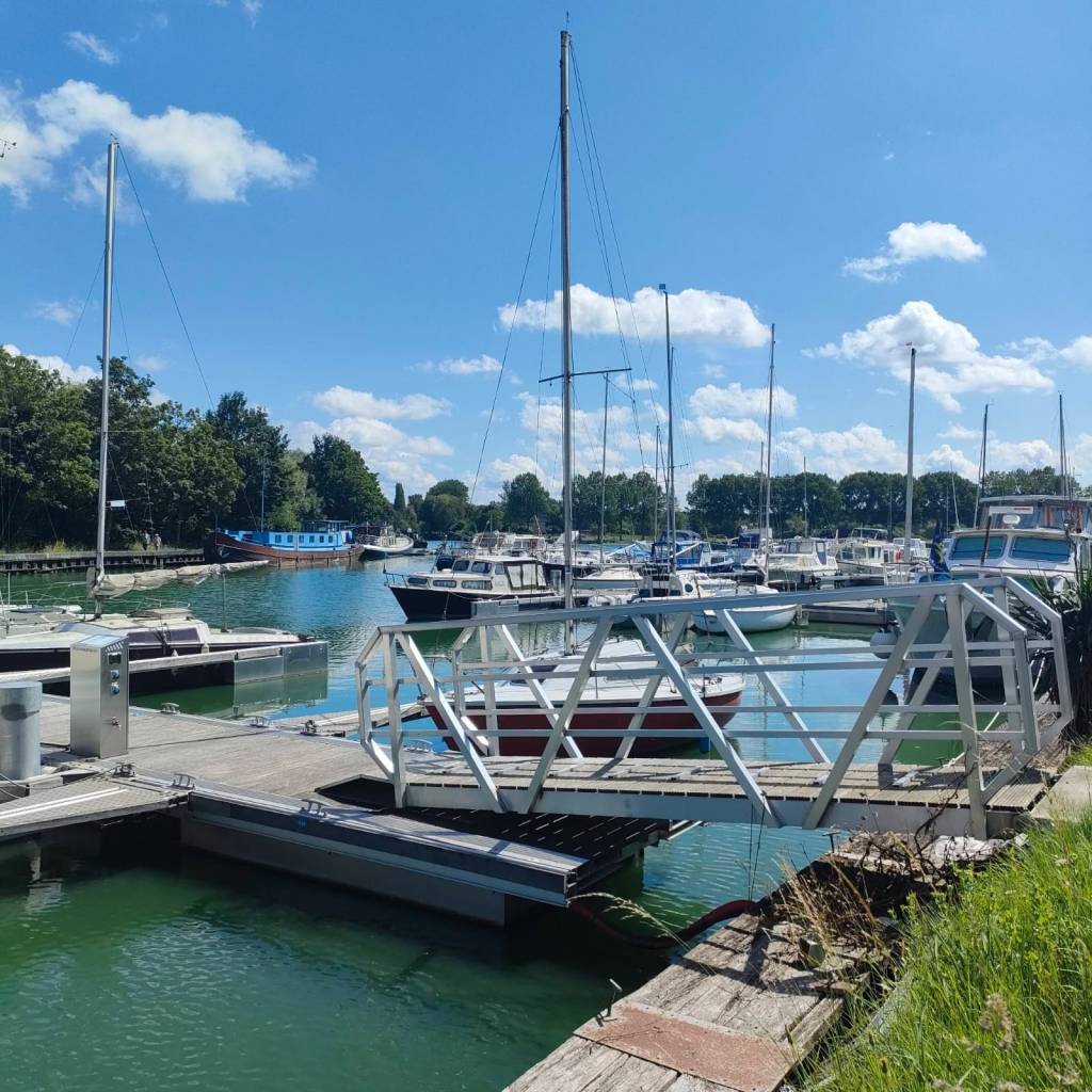 Voor vandaag hadden ze zeer warm weer voorspeld en daarom was ik graag vroeg vertrokken. Ik zat echter zonder proviand en moest tot 8:30 wachten tot de supermarkt open was. Aan de ingang hangt een notaatje dat je rugzakken en dergelijke aan het onthaal moet achterlaten. Een vlotte winkeldame:”Donnez-moi votre sac à dos, je vais le garder derrière le comptoir”. Vlugger gezegd dan gedaan want ze kreeg er geen beweging in. Met de hulp van een collega werd de rugzak dan achter de balie ‘gesleurd’. Inkopen gedaan en dan terug op weg. Bij het verlaten van Péronnes was ik gecharmeerd door een bijzonder mooi jachthaventje.