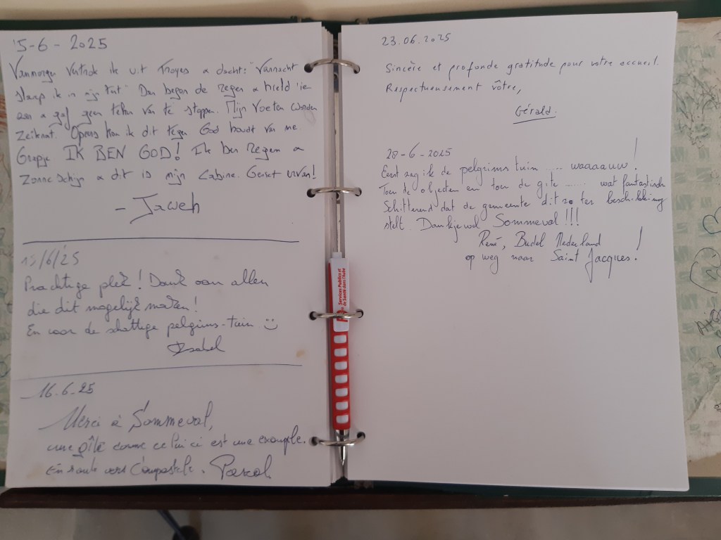 Na een goede twintig kilometer kwam ik aan in Sommeville waar ik opnieuw gebruik kon maken van een gemeentelijk pelgrimslokaal. Bij het raadplegen van het gastenboek stel ik vast: 1 dat er toch heel wat mensen onderweg zijn en 2 dat bij die mensen heel wat Nederlandstaligen zijn