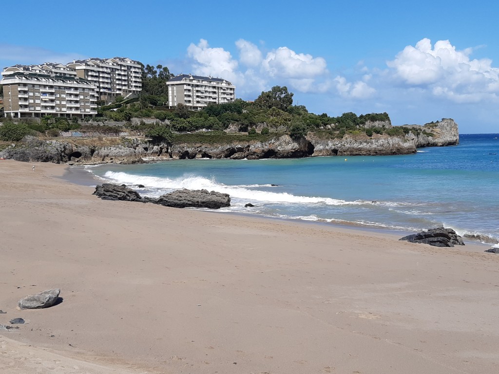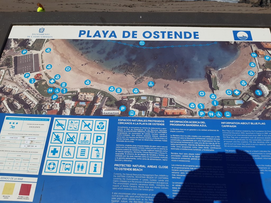 Even de tijd genomen om in Castro Urdiales naar het strand te gaan, nog wat uit te waaien en op de dijk nog van een Estrella (de plaatselijke Stella) te genieten. Tot mijn grote verbazing deden ze hier hun uiterste best om me thuis te laten voelen, aan de naam van het strand te merken.