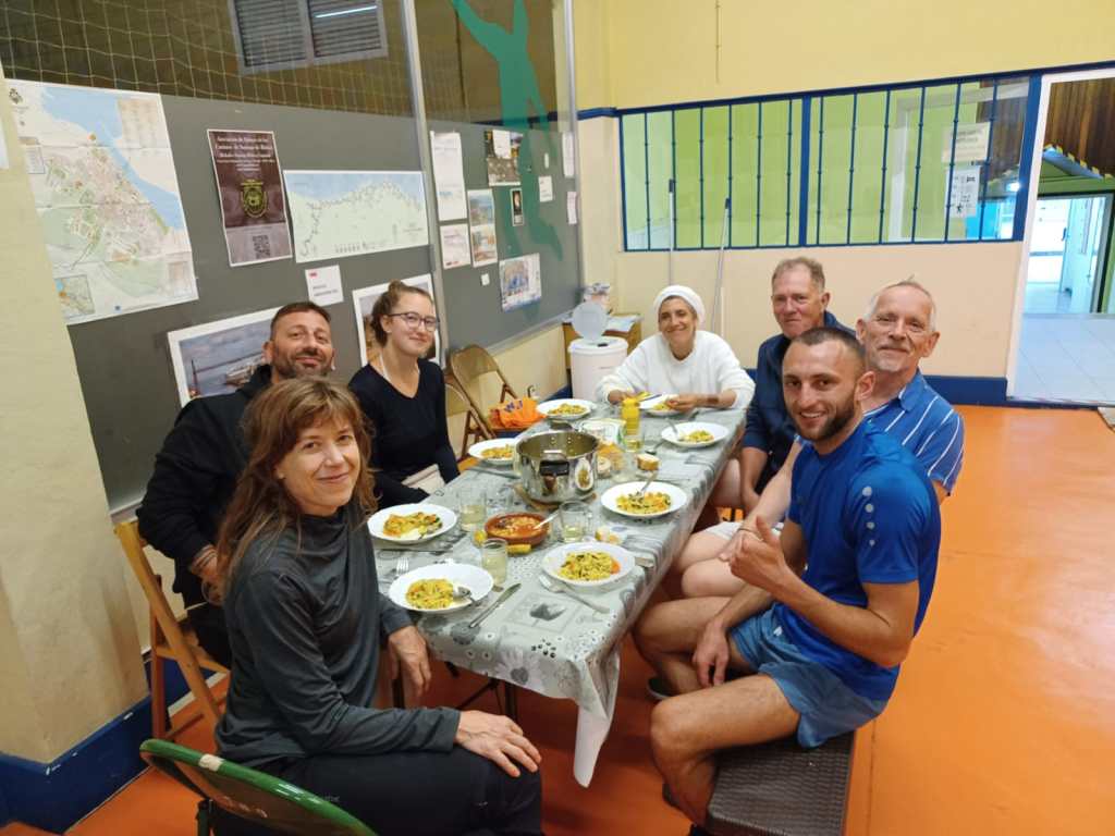 De Camino is een aaneenschakeling van ontmoetingen. Ontmoetingen met steeds weer andere personen die ‘het pad kruisen’. Gelijkgestemden die van overal komen. Het voelt aanvankelijk wat vreemd aan, die vanzelfsprekendheid, onbaatzuchtigheid en openheid. Maar je geraakt eraan verknocht. Het maakt allemaal deel uit van ‘l’Esprit du Chemin’ en de volgers met Camino-ervaring zullen dit ongetwijfeld beamen. Hieronder de tafel van gisterenavond. Wat een verscheidenheid, wat een verhalen ook.